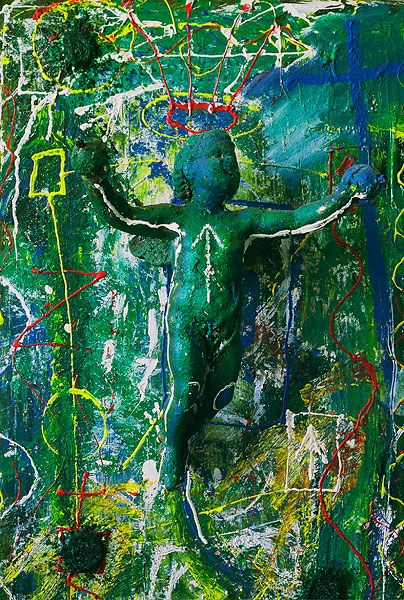 Assemblage Sonata with Blue, Green, Yellow and White (1999) 70.4 x 40.9 x 10.5cm Mixed Media - Plaster, Wax, Ground Rice, Acrylic Paint on Board All images are copyright of Abraham Emajaro, no display or reproduction of any kind without prior permission.